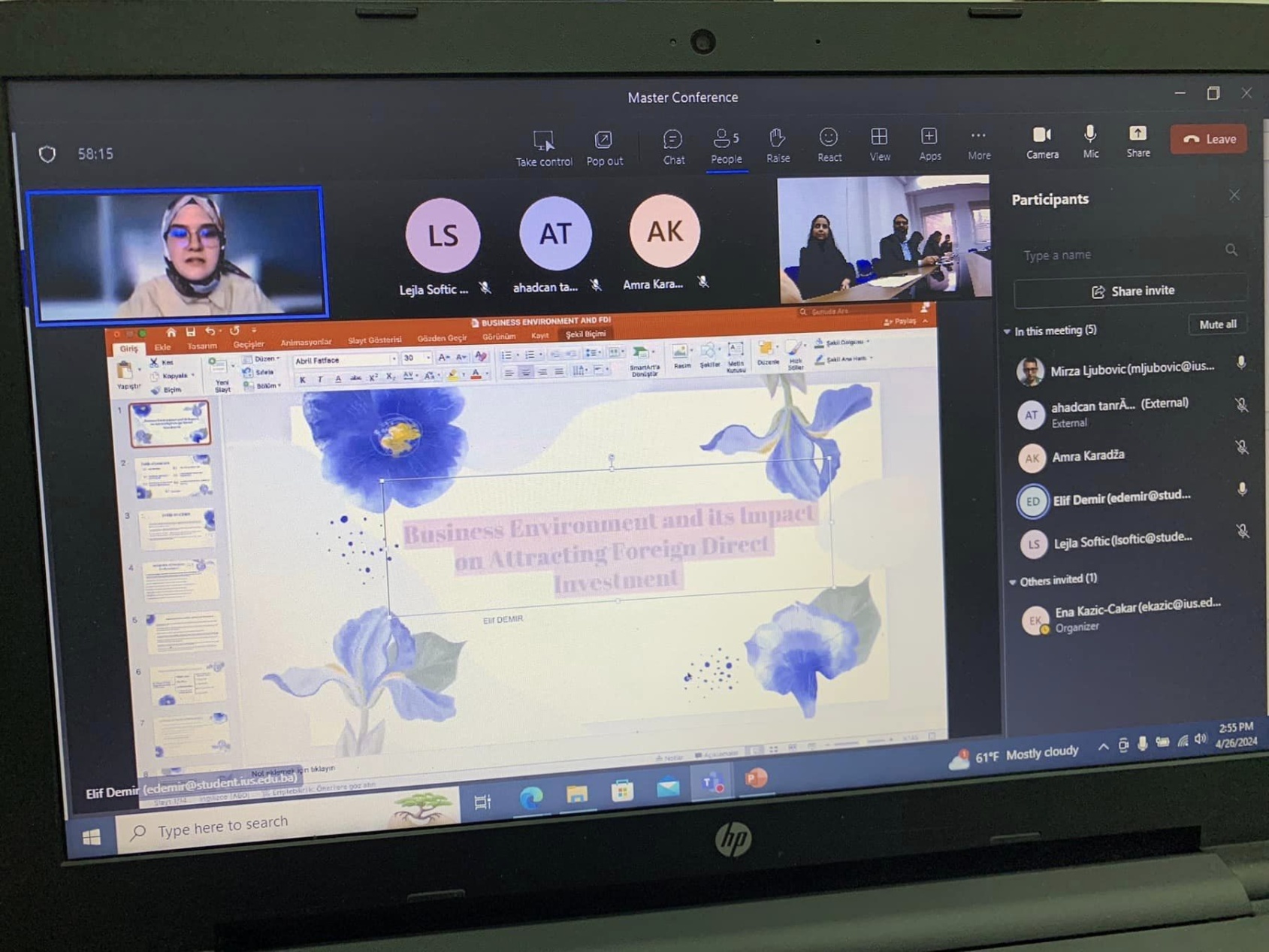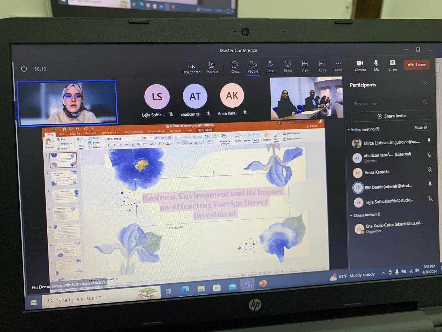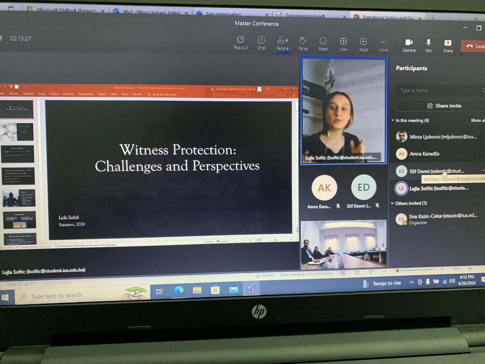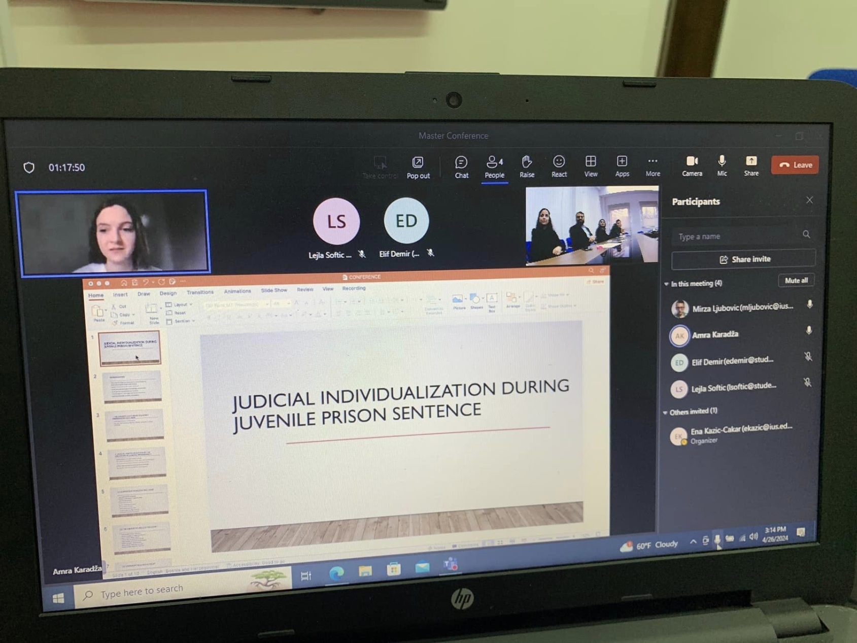 On April 26, 2024, Faculty of Law of the International University of Sarajevo organized a Master Conference titled "Challenges and Solutions in the Contemporary Law". Former and current master students at the Faculty of Law conducted presentations on contemporary topics in public and private law in a hybrid setting. The Conference was opened by the Dean of the Faculty of Law, Assoc. Prof. Dr. Ena Kazić-Çakar, whereas the moderator was Assist. Prof. Dr. Mirza Ljubović. The Conference was followed by the awarding ceremony and distribution of certificates to the participants. The Conference was closed with the desire to hold such and similar conferences in the future and to support students and alumni, in order to maintain close relations with their Faculty.