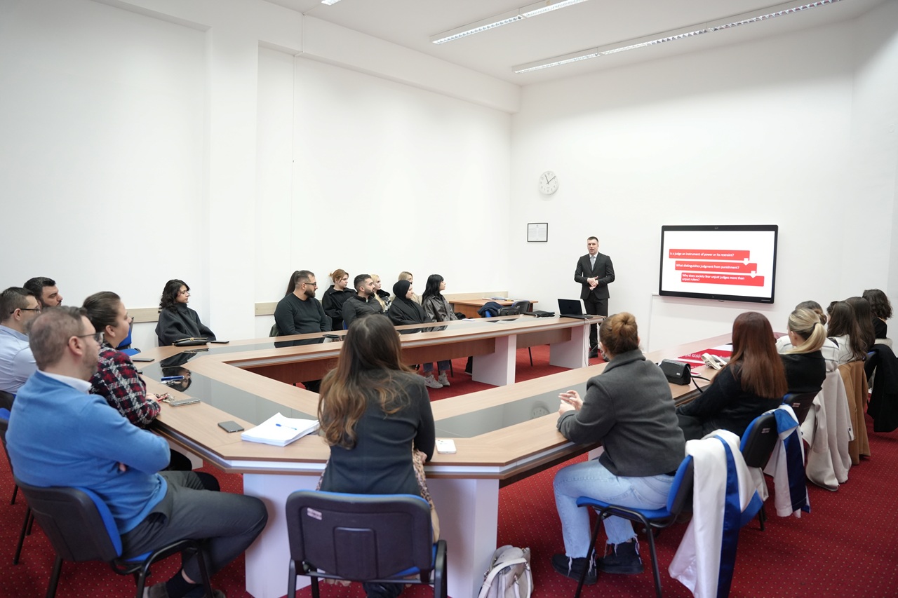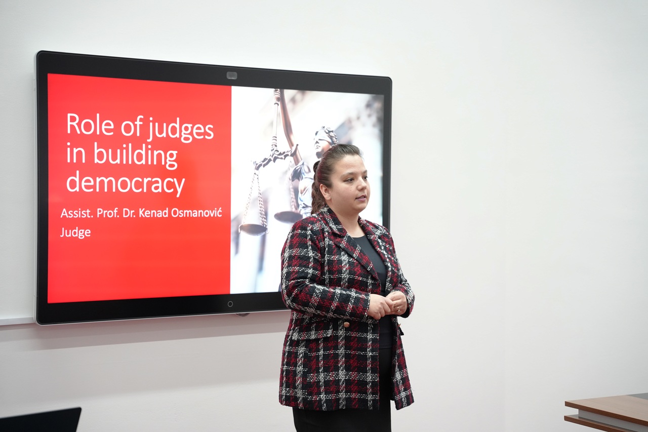 During his lecture, Judge Osmanović traced the historical development of the judicial function and underscored the separation of powers as a key foundation of a democratic state. He highlighted the principles that shape judicial responsibility - legality, independence, and impartiality - and explained how these values directly support the credibility of courts and the protection of citizens’ rights.