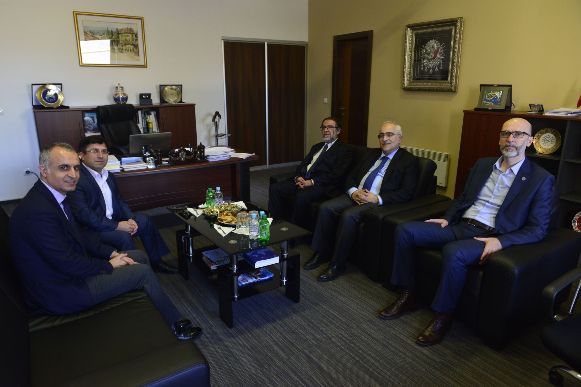Highly regarded guests were welcomed by the Rector of IUS, prof. dr Yücel Oğurlu in his cabinet alongside the Acting Dean of Faculty of Law, Assoc. Prof. Dr Ibrahim Dursun and Dean of Faculty of Business and Administration, Assoc. Prof. Dr Hasan Korkut. Professor Oğurlu presented the guests the work, development and achievements of the International University of Sarajevo, as well as plans for its further growth in terms of academic and infrastructural capacities. After the reception in the Rectorate, guests continued the visit at the Faculty of Law, where they were expected by the professors and students. A welcoming reception followed in the Dean’s Office, during which the esteemed guests were introduced to the characteristics of the legal system of Bosnia and Herzegovina and experiences in conducting teaching processes at their faculties and the Faculty of Law of IUS were exchanged wıth the purpose of achieving the best teaching and scientific results.